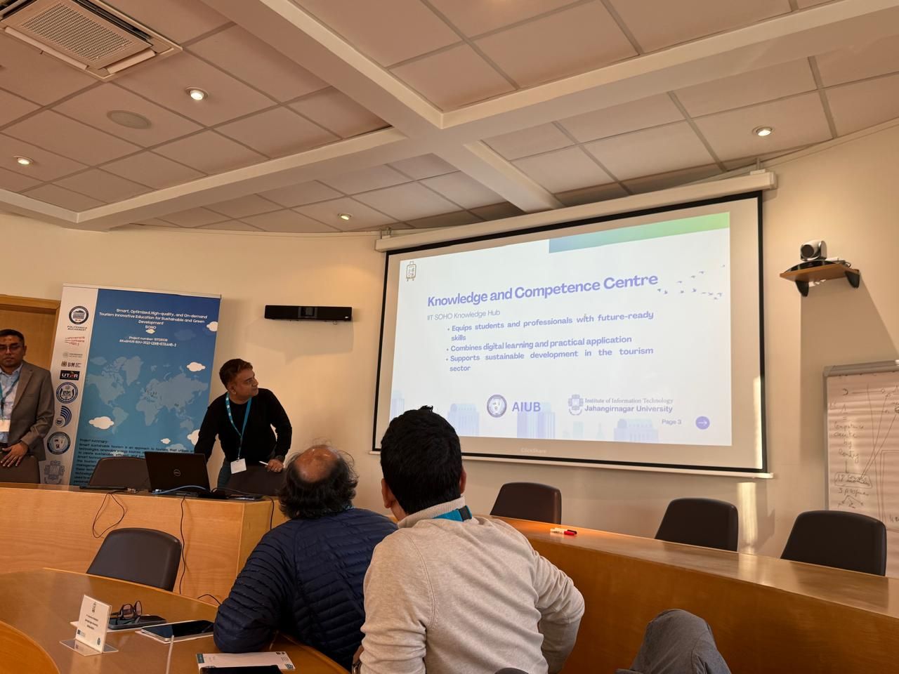 The director of IIT Prof Dr Risala Tasin Khan along with Project Team Lead Prof Dr M Shamim Kaiser, Team members Prof Dr Shamim A Mamun and Prof Dr Md Sazzadur Rahman joined the meeting from IIT JU. The delegation from American International University-Bangladesh (AIUB) included Prof. Dr. Md. Abdur Rahman, Pro-Vice Chancellor, and Associate Professor Dr. Chowdhury Akram Hossain, Head of Computer Engineering. Both Universities from Bangladesh continue to actively contribute to the academic and research components of the SOHO project.